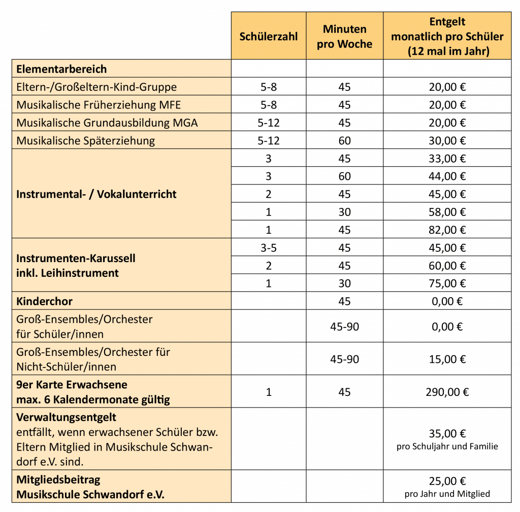 Probezeit: Auf Wunsch kann bei Erstanmeldung eines Schülers eine Probezeit von 3 Monaten vereinbart werden. Dies ist nur möglich, wenn die Voraussetzungen seitens der Musikschule gegeben sind. Ein Anspruch besteht nicht.